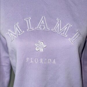 Cozy lavender sweatshirt with 'Miami Florida' text. Perfect for casual wear.
