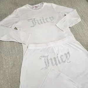 Juicy Couture Tracksuit Women XL Bone White Pants Jacket Velour Y2K Baby Doll