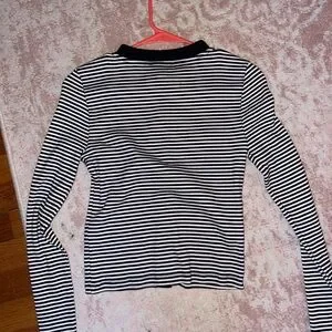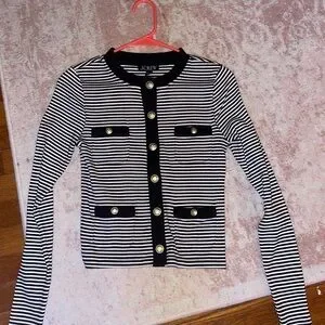 Chic navy and white striped sweater by J. Crew. Accented with gold button detail.