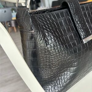 Beautiful vintage genuine leather bag, made in Italy. Crafted in black leather with an elegant crocodile-style texture—timeless, sophisticated, and high quality inside and out.