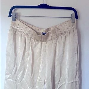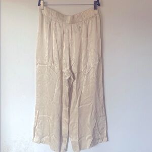 Elegant gold satin pants with a comfortable elastic waistband. Ideal for versatile styling.