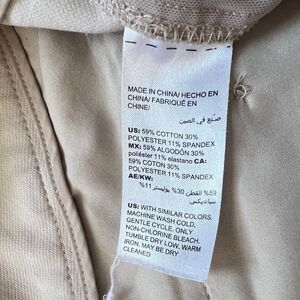 Chico's So Slimming Sophia Slim Ankle Pants in Khaki Tan. Chico's Size 3R (Regular Size 16R). Style 570262074. 59% cotton, 30% polyester, 11% spandex. There are some pulls on the pants.