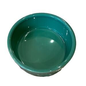 This Longaberger Mulligan cat food bowl dish is the perfect addition to any cat owner's collection. The green ceramic material adds a pop of color to any kitchen or dining room, while the standard size and unique basketweave design make it a stylish and functional choice for feeding your feline friend. The bowl is in excellent condition with no chirps cracks or flaws. It is 5” wide.
