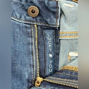 These Lucky Brand jeans feature a stylish boot leg design in a classic blue hue. Crafted from a comfortable cotton blend, they offer a relaxed fit with a subtle gradient effect for a modern touch. Perfect for adding a chic flair to your everyday wardrobe.