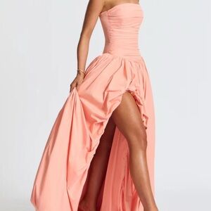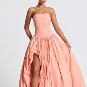 Peach Strapless Ruched Maxi Gown