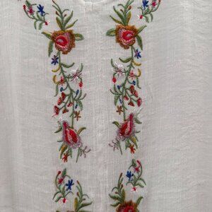 Zac & Rachel Woman White Embroidered Boho Blouse Front Tie 1X Floral Cottage