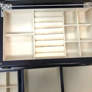 This elegant wooden jewelry box is perfect for organizing your precious items. Its rich expresso brown finish adds a touch of sophistication to any room.