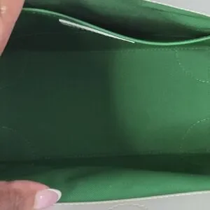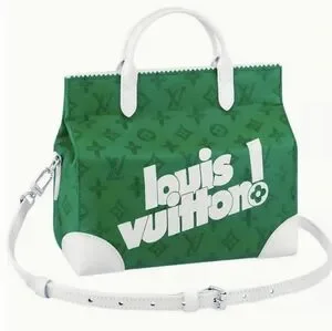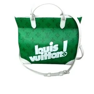 This Louis Vuitton satchel bag part of the Everyday Louis Vuitton capsule collection introduced in the fall of 2021 by Virgil Abloh showcases a striking green and white color palette, offering a modern and structured design. The bag features a vibrant green body with contrasting white handles and trim, creating a bold visual appeal. Crafted with precision, it combines luxury and functionality, making it a standout accessory for any occasion.