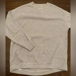 Aerie Getaway Waffle Crewneck Sweatshirt Women’s XS Oversized White Blue Knit