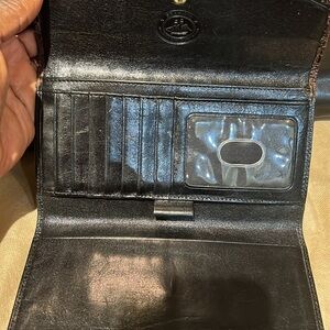 Elegant black and brown croc-embossed bag set. Includes matching wallet. Stylish and sophisticated design.