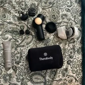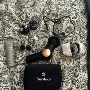 Therabody facial kit with versatile attachments. Includes a sleek carrying case. Has all attachments,case and hot and cold attachments. Used a half a dozen times has been sanitized and cleaned.Excellent condition well below retail price.