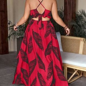 Size 16 2X SHEIN Red and Black Leaf Print Maxi Dress