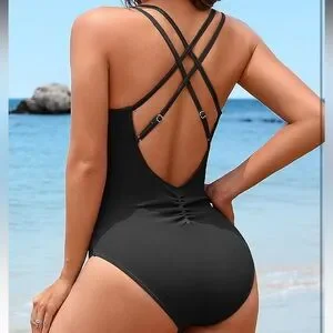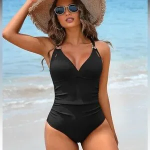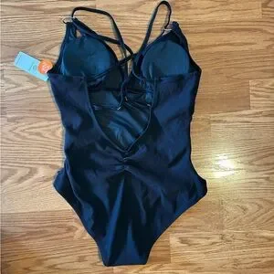 NWT Charmo Black Ribbed Ruched One-Piece Swimsuit Size L