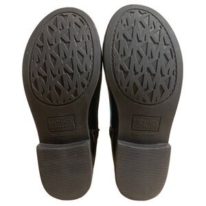 Stylish and sleek, these Michael Kors Emma Derby Riding Boots in girls size 2 feature a classic black and brown leather design with gold-tone MK logo hardware. These mid-calf boots are perfect for fall and winter, pairing easily with dresses, leggings, and jeans for a polished, put-together look. Crafted with durable faux leather, side zip closure for easy on/off, and a comfortable fit for all-day wear. A mini fashion statement for the little trendsetter! Few scuffs on toe of one boot as shown in pictures, otherwise in great condition.