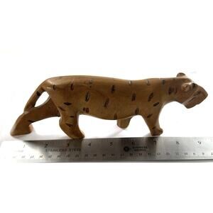 Vintage Besmo Wood Leopard Figurine Hand Carved In Kenya