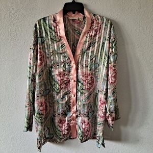Vintage Gold Label Victoria's Secret Size Sm Pink Green Floral Button Down PJ Top