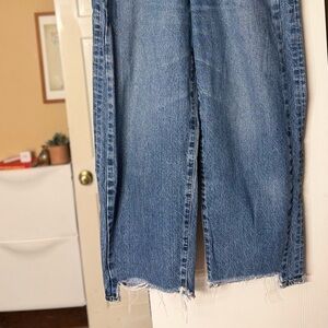 Discover the perfect blend of style and comfort with Moussy's blue ankle cropped jeans. These jeans feature a high-waisted fit and a relaxed curved leg silhouette, crafted from sturdy, non-stretch Japanese denim. The raw, frayed hem adds a touch of vintage-inspired flair, making them a versatile addition to any wardrobe.