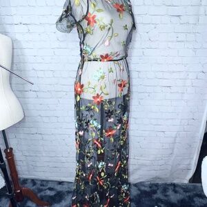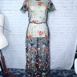 👗 |•LULAROE•| Beautiful Full Length Sheer Dress Colorful Embroidered Flowers M