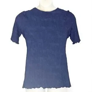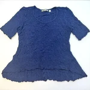 Sno Skins Dreamcatcher Crinkle Top Blouse Sz Large Scoop Neck Blue Soft Stretch