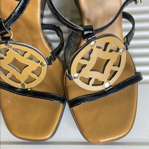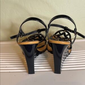 BCBGirls Black and Tan Wedge Sandals