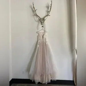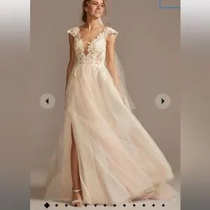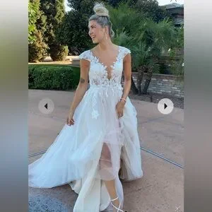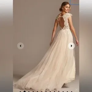 Wore once! Beautiful gown! Rhinestone Belt in wedding pic not included. If you are interested in belt, I can list it separately.