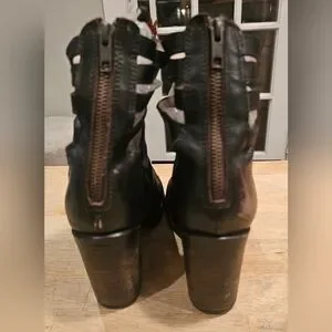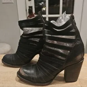 Step out in style in Caesr. These chic distressed black strappy ankle boots by Freebird by Steven. Size 9 excellent condition. Perfect for any occasion, these boots offer both comfort and elegance.