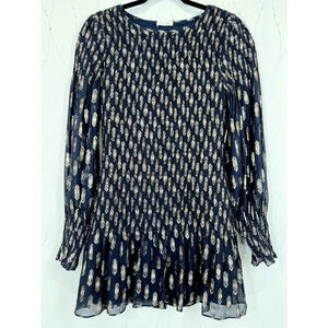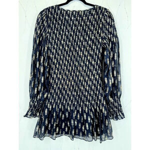 LoveShackFancy Scarlett Dark Navy Gold Smocked Mini Dress $375