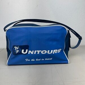 Vintage Travel Bag Unitours Blue Panam Style Shoulder Strap Vacation Flight 70s