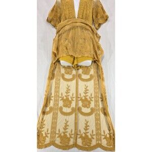 Honey Punch Womens Lace Maxi Romper Sheer V-Neck Dress Yellow Size S Fairy Boho