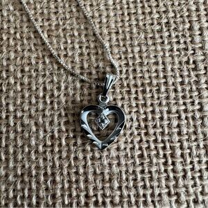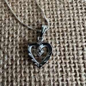 Vintage Sterling Silver Heart Pendant with Diamond on 18” Sterling Box Chain