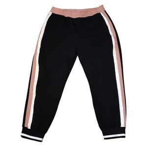 women’s Large Black Jogger Pants with Pink and White Stripes