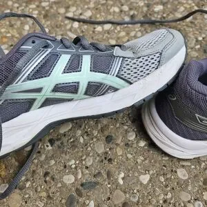 Experience comfort and style with the ASICS Women's Gel-Contend 4 Running Shoes. Featuring a sleek gray design with mint accents, these shoes offer excellent support for your daily runs.