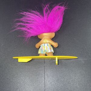 Russ Troll Doll Surfer With Pink Hair Shorts And Yellow Surf Board 3 inch
