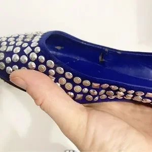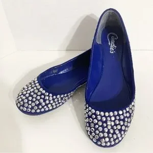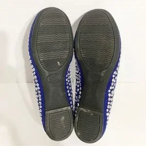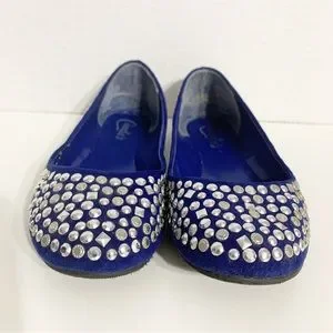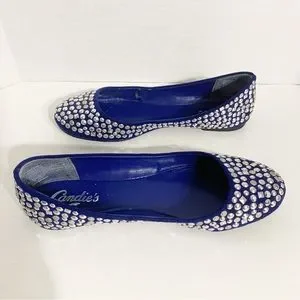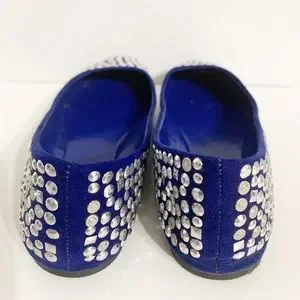 Candies Faux Suede Covered in Silver Toned Studs Rounded Toe Ballet Flats Royal Blue 💙