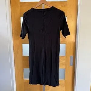 This black sheath dress from GAP features a classic crew neck and short sleeves, perfect for a casual outing. Its midi length and minimalist design make it a versatile addition to any wardrobe, offering a sleek and timeless look.