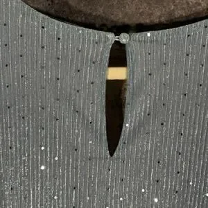 This elegant dress features a V-neckline and short flutter sleeves, with a button closure and made from polyester material