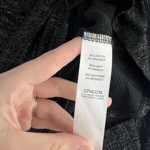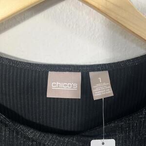 NWT Chicos Black Metallic Foil Twisted KeyHole 3/4 Sleeve Knit Top Blouse Size 1