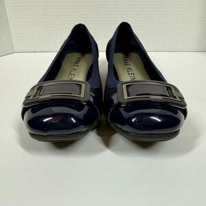 Anne Klein Akunice Navy Women 6 1/2M Patent Toe Ballet Flat Heel Comfort Buckle