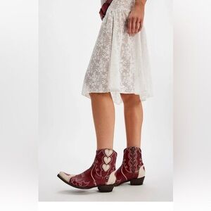 Free People Double D Ranch Rodeo Sweetheart Boot Hearts Zipper Red Ivory