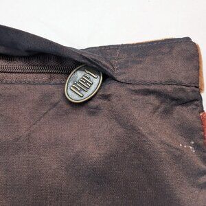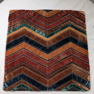 Pier 1 pillow cover. Brown satin with strips of blue, rust, and brown velvet in a gorgeous chevron pattern. 16 x 16 Inches. Cover only; no insert. Backing is a solid brown satin. Covered zipper. Excellent condition, slight imperfection in upper corner on back (see photo). EUC.