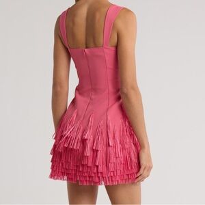 Step out in style with this elegant pink fringe dress. Perfect for any occasion, this dress combines sophistication with a playful touch. The vibrant pink color adds a pop of color to your wardrobe.