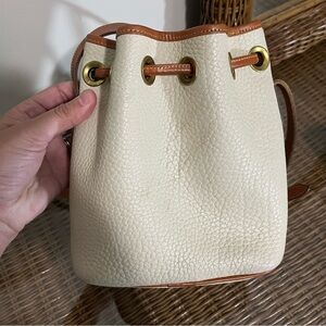 Vintage Dooney & Bourke Cream Brown Pebbled Leather Bucket Bag
