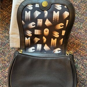 Sleek black leather bag by Marc Jacobs. Gold-tone logo accents. Perfect for any occasion. New with tags.