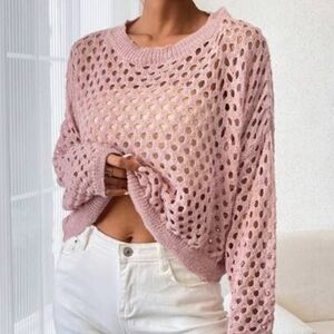 CROCHET Hollow Out Drop Shoulder Open Knit Sweater Size Large