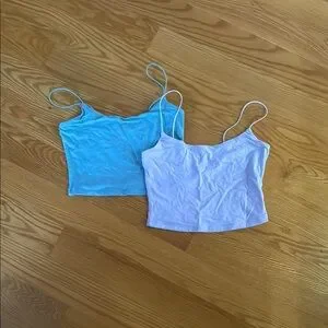 Stylish and comfortable, these women's spaghetti strap tops are perfect for any casual outing. Available in blue and Lavender, they offer a versatile addition to your wardrobe. Aeropostale Seriously Soft Collection both are smalls