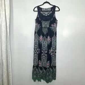 Bila Women Sleeveless dress Boho Beach Paisley Size M embroidered multicolor