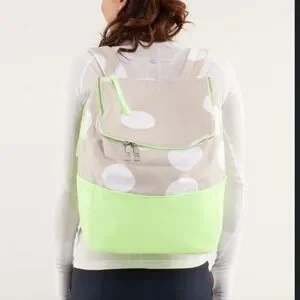 Lululemon Spring Fling Pack Polka Dot Backpack in Neon Green and Beige