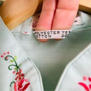 Vintage Chinese Traditional Embroidered House Robe Aqua Blue size M (40)