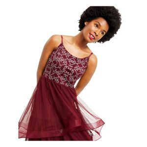 SPEECHLESS Womens Burgundy Spaghetti Strap Full-Length Evening Dress 3