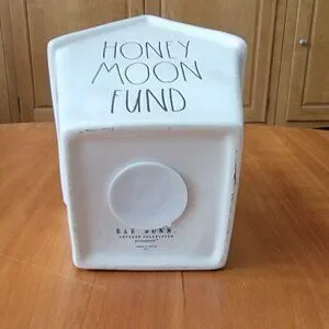 Ceramic house shaped "Honey Moon Fund" savings bank by the Rae Dunn Artisan Collection. This cute bank is the perfect gift for the newly engaged. Set it out at the bridal shower or reception to get the honeymoon fund started! Also makes a great gift filled with a generous check or a bundle of cash. When you're done with it, you can Posh it so that a new couple can enjoy it ❤️